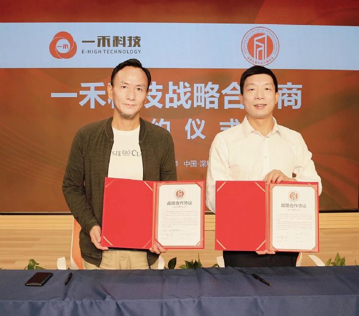 深圳市一禾音视频科技有限公司董事长陈小林(左)深圳市室内设计师协会会长赵庆祥(右)
