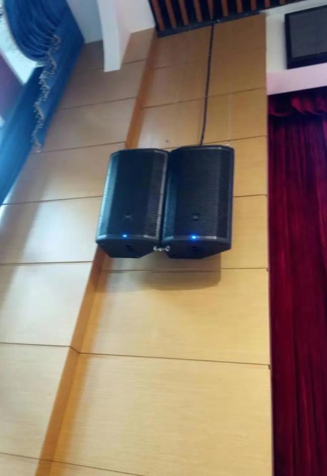 综合报告厅的需求,音响均采用了美国JBL PRX800W智能有源扬声器系统,主扩声左右声道各采用两只PRX815W,单只声压可达137dB,报告厅辅助补声采用壁挂方式,采用了底部角度可选双孔设计的PRX812W,演讲台上摆放四只PRX812W作为流动返送,舞台下方内嵌摆放两只PRX818XLFW作为低音补充。