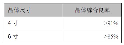 (1)在 LED 衬底材料领域:公司拥有自主知识产权的晶体生长方法“坩埚下降法”以及自行设计制造加工的 MCGE 型晶体炉进行蓝宝石晶体的生长,相较其他长晶方法(如“泡生法”、“热交换法”等),“坩埚下降法”具有如下特点:1.设备简单,操作程序容易控制,便于实现全自动控制,成品率高,扩产能力迅速,容易大规模量产;2.下降法生长单晶更符合自然规律,熔体内杂质和汽泡更容易排出,从而得到优良单晶体;3.操作灵活性高,可以在同一台晶体炉内生长任意方向的 2-8英寸等径单晶体。不同尺寸晶体的综合良率如表格所示: