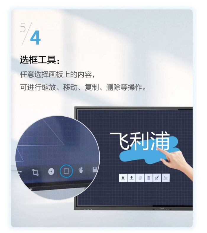 4、选框工具∶任意选择画板上的内容,可进行缩放、移动、复制、删除等操作。