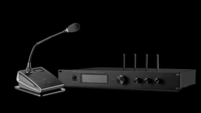 会议主机选择惠威HCS1000CCU,它通过全数字无线音频传输,可加密以防止其他系统干扰;采用pi/4 DQPSK数字调制解调技术,16bit 48kHz的PCM格式音频编解码,2毫秒极低语音延时,满足现代会议扩声对音质的要求。HCS1000D满电工作时长≥10H,同时配备4个CHG01充电座,可呈现出高保真、高灵敏度、远距离发言效果,让会议更加高效、高质量地完成。