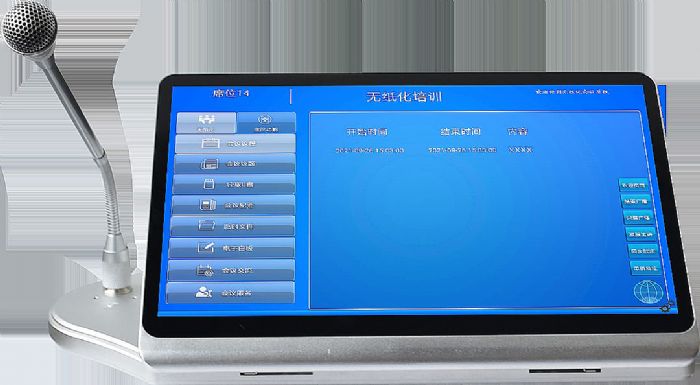 腾中无纸化桌面式会议系统是腾中自主研发的新一代分布式跨平台无纸化会议系统,根据会前、会中、会后清晰管理,触摸式人机交互方式,快速开会、高效沟通;一套设备满足会议文档发送、阅读、共享、交流、会议签到、发言、表决、记录、服务等应用。