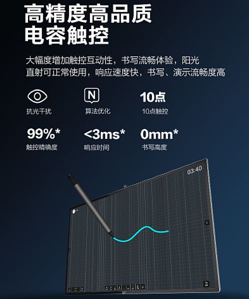 除了电容屏触控以外,优秀的全面屏设计,屏占比91.33%、3mm防眩光钢化玻璃、主动式电容笔和0mm书写高度等功能更是在其本就优异的操作体验上做到锦上添花。