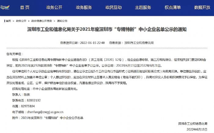 根据《深圳市工业和信息化局专精特新中小企业遴选办法》(深工信规〔2020〕12号),经企业自愿申报、第三方机构评价、征求相关部门意见和综合评定,深圳市华科创智技术有限公司获批2021年度深圳市“专精特新”中小企业认定。
