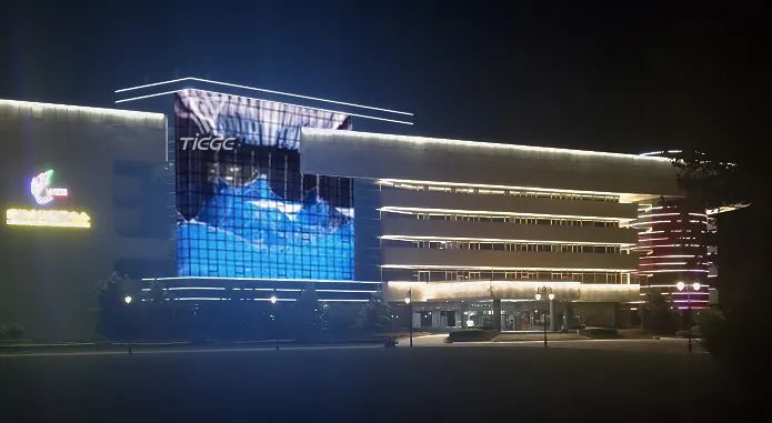 方米,可容纳600个国际标准展位,是举办国际国内大型展览会的理想场馆。目前正在建设的投资2500万元、建筑面积1.5万平方米的国际展馆三期工程也将竣工,在国际展馆门口大屏正是出自铁歌科技裸晶贴膜屏,屏幕点亮后光耀夺目,可用于发布最新展会讯息,宣传视频,防疫政策等,运用大屏提升会展中心知名度,成为国际会展中心智慧信息传播窗口。