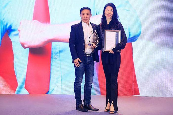佳联公司作为森海塞尔品牌深度合作企业,凭借优异的业绩表现,荣获2021年度大中国区A4V最佳经销商奖,佳联公司副总经理宋华上台领奖并致谢。
