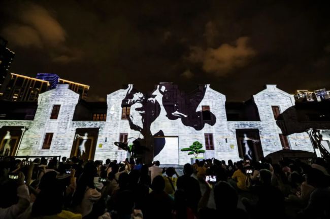 上海总商会旧址向观众展示了由世界顶级灯光创意团队和艺术家共同打造的大师光影秀,《维度回响》、《盛宴DISHURAMA》、《寻光》等不同主题与风格的投影秀轮番上映。