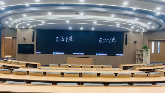 此次中科大采用东方中原带有互联功能的纳米书写板,与巨型显示大屏相结合,打造超大展示屏幕,可轻松满足大型教室的教学演示需求。