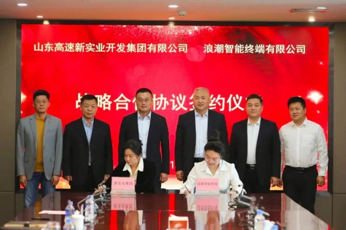 12月12日,浪潮智能终端与山东高速新实业开发集团(以下简称新实业)签署战略合作协议。新实业集团党委书记、董事长邹博,浪潮智能终端有限公司党委书记、董事长孙业志出席签约仪式。新实业集团党委委员、副总经理张艳霞,浪潮智能终端有限公司生态合作处总经理于晓妍代表双方签署协议。新实业集团党委委员、总会计师张建忠,党委委员、副总经理罗广亮及相关部室负责人,浪潮集团山东区副总经理秦滨、浪潮智能终端交互显示事业部副总经理李旭东参加签约仪式。