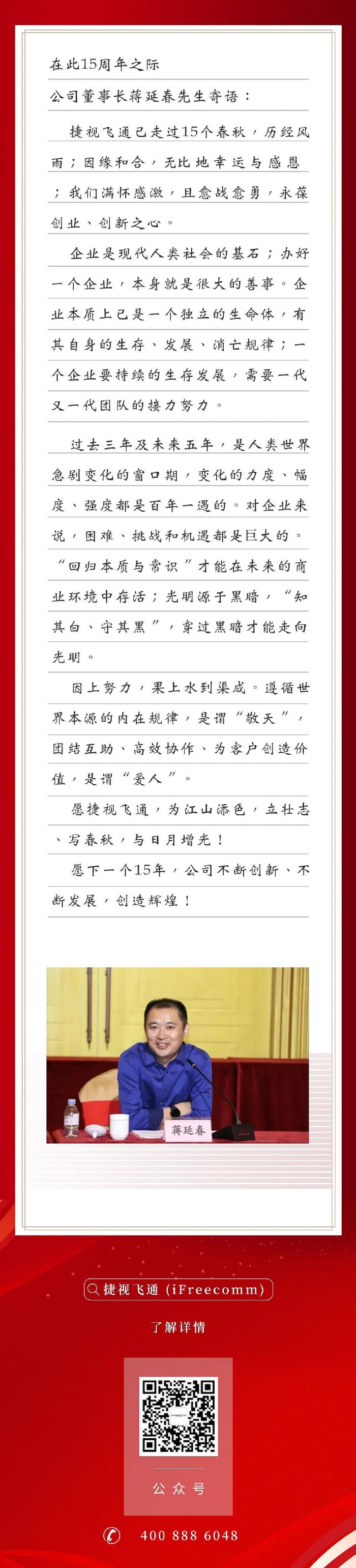 祝贺深圳市捷视飞通科技股份有限公司成立15周年