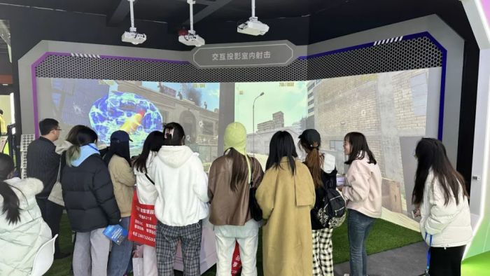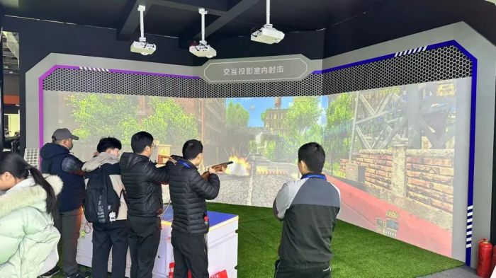 射击游戏的环绕空间,由3台爱普生高亮激光短焦投影机CB-L210SF融合打造。超大画面让玩家清晰捕捉每个战斗细节。更有实时竞技反馈与音响的双重加持,带来“砰”然心动的射击体验,让大朋友、小朋友都欲罢不能!