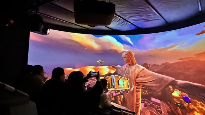 裸眼3D轨道影院是主题乐园中的明星项目。观众无需佩戴眼镜,也能在巨大的环绕画面前体验到超强沉浸感。