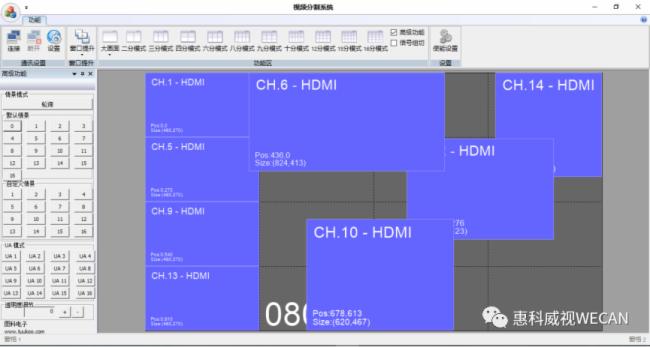 支持定制2至16画面分割,最小可以做到2画面分割显示,最大可以定制到16画面分割显示,包括一些特殊的分割数量模式如:5分割、7分割、13分割等。