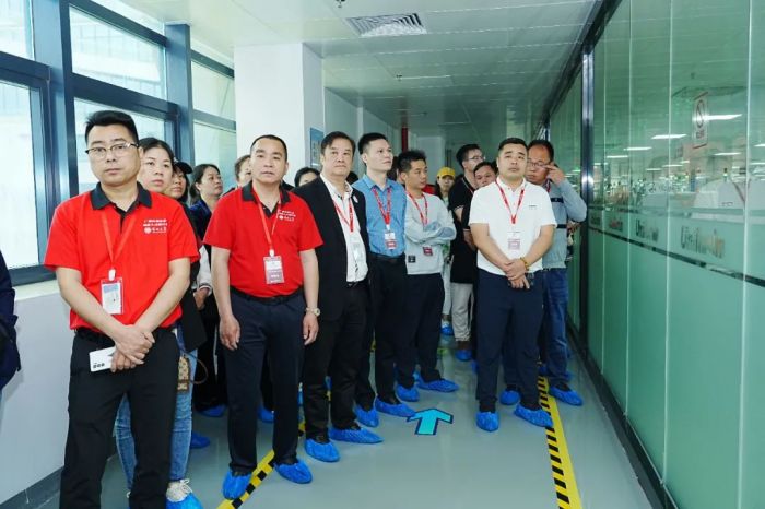 在洲明相关负责人的陪同下,企业家代表一行首先参观了园区空中花园等休闲功能区,以及SMT模组车间、拼屏老化车间等生产区域,对大亚湾科技园的办公环境和LED半导体产品的生产工艺进行了详细了解。