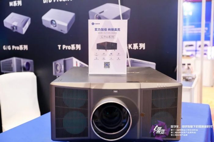 新品于展会亮相,吸引与会者驻足。此次亮相的G Pro系列,在原G系列基础上,升级为双色激光3DLP投影机,色域上从REC.709升级为95% DCI-P3,色域更广画质更出众,同时新增 0.7:1和0.8:1两款镜头,可为合作伙伴提供多样化的选择空间。