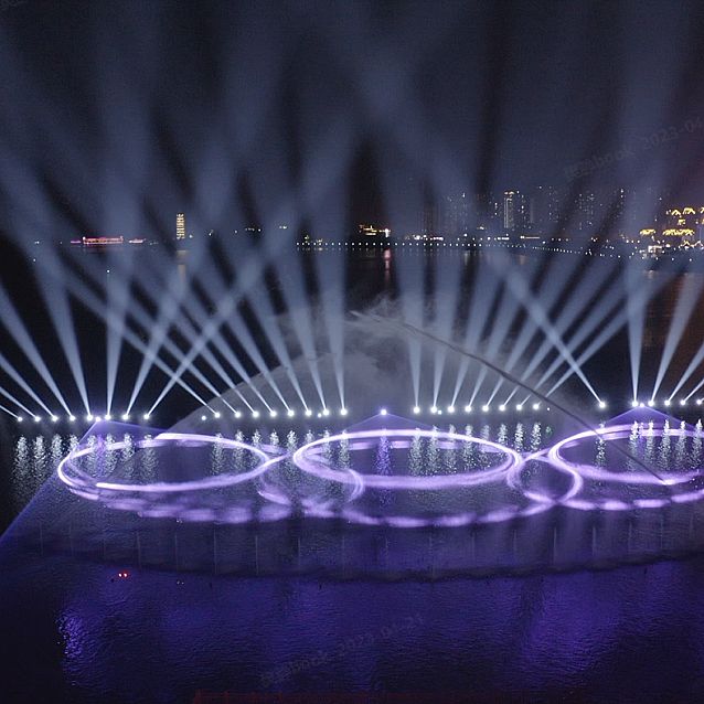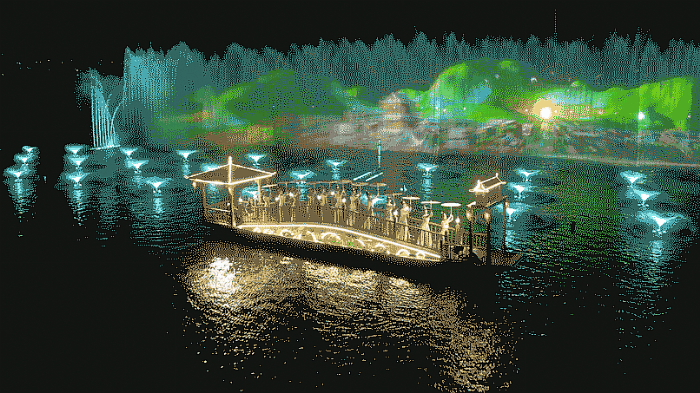 4台 光峰T系列26000高流明激光投影机投射于巨型水幕上,上演一场以天为幕、以水为台的光影大秀。