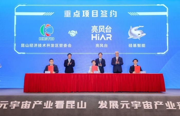 4月25日,昆山元宇宙重点项目签约仪式在昆山开发区举行,亮风台与昆山市达成元宇宙项目重点落地合作,基于产业元宇宙基础平台,助力昆山打造“增强/虚拟现实+工业”的产业形态,为昆山打造具有竞争力和引领力的元宇宙产业发展先行示范区注入新动能,同时签约的还有硅基智能。