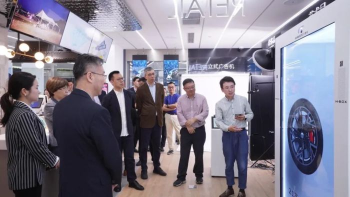 一行领导首先参观了冠捷科技全屏体验中心,展厅通过零售、办公、医疗、教育、交通、电竞、家居、酒店等应用场景,全面展示了冠捷科技旗下全品类、全场景的产品应用解决方案。经由实地参观、现场讲解、操作体验,一行领导更加直观地感受到冠捷科技深耕行业多年的深厚底蕴和科技实力。