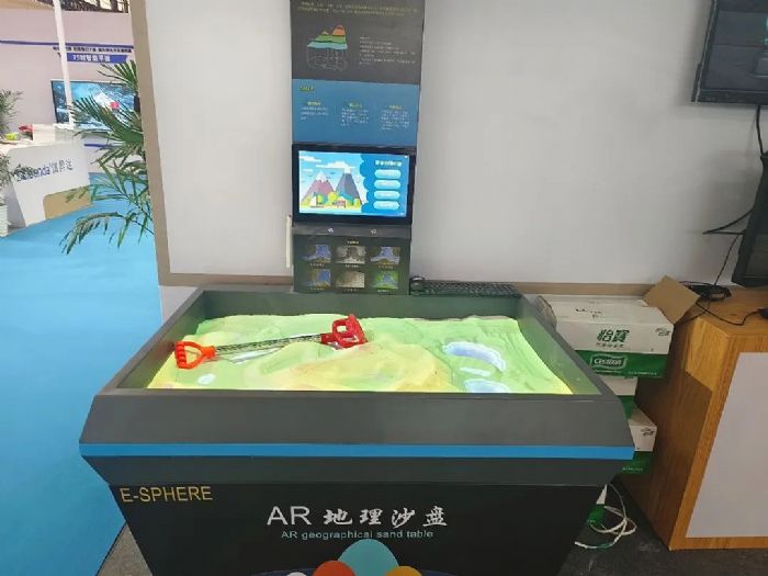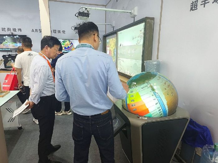 此次展会史地产品不光展示了数字立体地形、多媒体球幕投影演示仪、AR地理沙盘等主流明星教学产品,同时展示了AR梦想地理课堂、乾舆经纬、九州春秋等AR、VR系列前沿的虚拟显示产品。