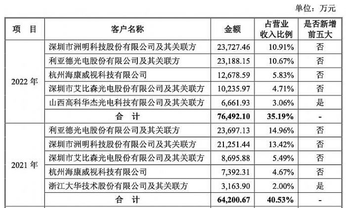 对比2021年和2022年,前5大客户除了排序上基本没什么变化,只是2022年山西高科华杰3.06%挤掉了2021年浙江大华成为诺瓦星云的第五大客户。有意思的是,2022年洲明成为了诺瓦星云最大客户,成交金额达到23727.46万元。某种意义上,这也侧面印证了洲明LED大屏出货量遥遥领先。