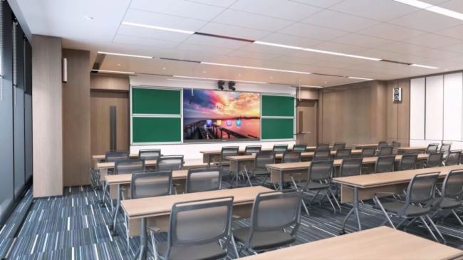 超大尺寸的Micro LED超高清显示面板,具备高亮度、高对比度、广色域和超强防护等卓越显示性能,真实还原自然色彩,画面显示高清、细腻,即使坐在后排和角落的学生也能看清教学内容。