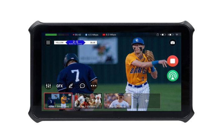 该产品将多路输入信号切换、图形叠加、推流、录制和监看集成在一个小巧的设备中,使单个操作者能够轻松创建引人注目的节目,用于现场活动报道、远程制作素材回传等。