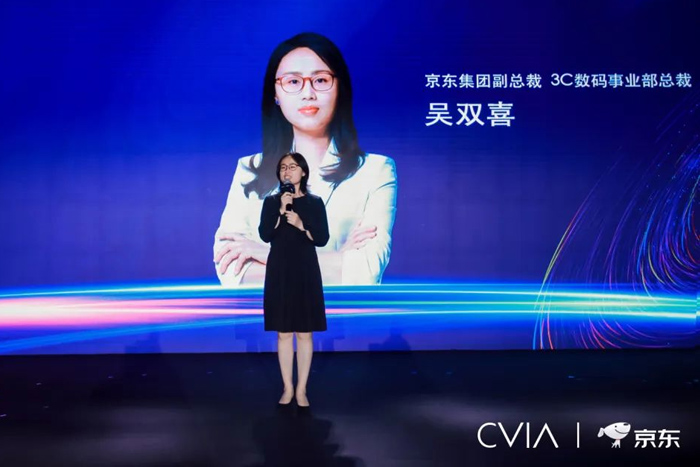 京东集团副总裁、3C数码事业部总裁吴双喜女士代表指导方为大会致辞。她提到,近几年人们生活方式的转变,年轻人对生活品质的追求,使得投影备受消费者青睐,京东将持续推动投影品类的普及和产业技术升级。吴总现场总结了“三xin”:第一是信心,投影品类有很宽广的前景;第二是耐心,市场会呈现螺旋状上升,要有战术定力,不能“乱拳出击”;第三是创新,投影机要从用户体验入手,改变同质化,提升易用性。京东会贡献自己的力量,包括产品共创、营销资源上和企业一起推动智能投影市场的健康发展。