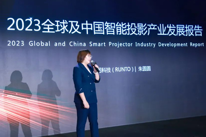 洛图科技(RUNTO)总经理朱圆圆女士对全球及中国投影行业的发展进行了深度解析。2023年,全球投影机的出货量规模预计将逼近1900万台,中国在全球的地位举足轻重,是最大的消费市场,占据近四成的市场份额;同时在投影面板、整机制造和品牌出货等方面,占全球的比例均达到60%以上。
