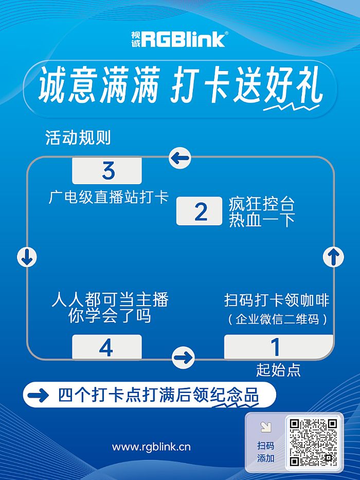现场采用打卡通关的游戏,展会现场设置四个打卡点,参观者边游戏边了解视诚。
