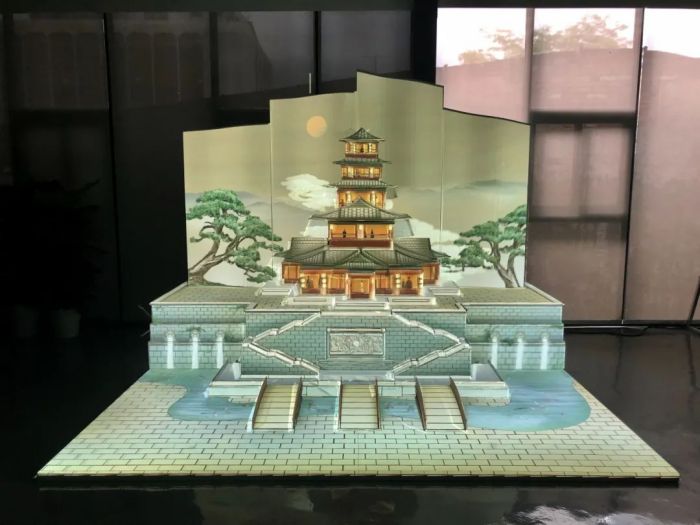 基于这一成功经验,科视中国团队在 2021 年通过 Mystique 在一件古塔楼三维模型上完成了一项更具挑战的投影映射。模型宽 3 米,高 2.5 米,具有 8,500 个表面,由 1DLP 激光投影机进行投影。