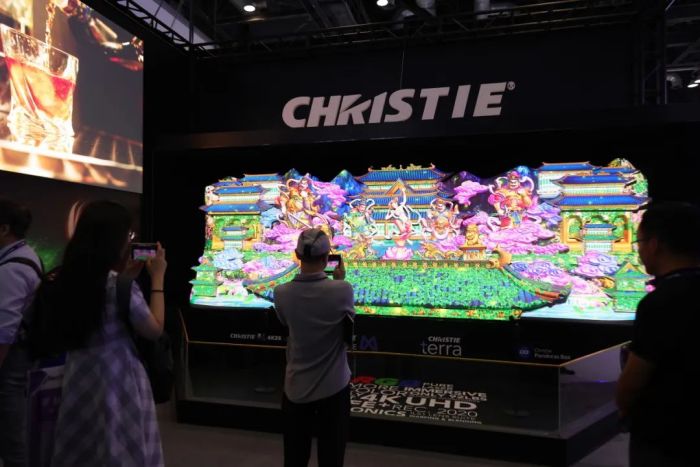 时间追溯到 2020 年 InfoComm China,一项几何多面模型投影映射在科视展位首次展出。科视运用 Christie Mystique 软件针对几何狼头模型的 250 个表面进行图像的对齐、校准及融合。