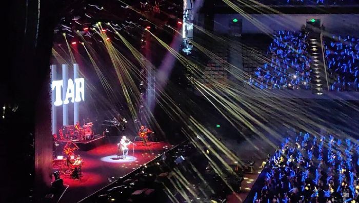 伍佰在演唱会上始终保持良好的状态,以最饱满的精神面貌还有他独特的嗓音和表演风格,将每首歌曲都演绎得淋漓尽致。他的舞台表现力极强,通过不断与观众互动,带动了全场的气氛,用无穷的热情和能量感染了每一位在场的观众,让整个演唱会成为一场充满活力和狂热的音乐派对。此外,现场的布置也相当用心,演出舞台设计精良,舞美效果令人惊叹。舞台上300㎡的联诚发LCF龙腾系列LED透明屏不断变换着炫酷的画面和场景,加上灯光和特效的巧妙运用,交替闪耀,与伍佰的歌曲相互呼应融合,为整个演唱会增添了动感和韵律,也给观众带来了视觉与听觉的双重享受。