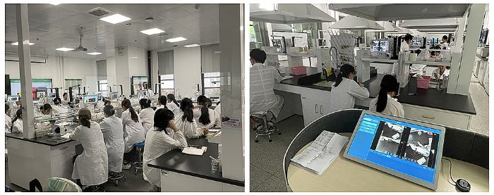 通过实验台上的摄像设备,可以任意调取学生实验台上的实验过程画面,进行观看或展示在教学屏幕上,以帮助老师更好地了解不同学生的实操水平,并进行针对性指导。