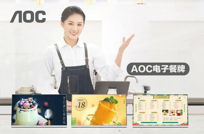 在小尺寸商显上,AOC创新也不断深入。包括推出10T2M会议预约屏,可通过硬件+软件一体化实现多渠道便捷管理会议,完善企业内部会议预约体系,重塑会议预约流程;AOC还推出新款23.8英寸的桌面终端——智慧电子餐牌,采用三边超窄边框的设计,让机身更加纤薄精致;白色简约的金属外观,更显高端质感,通过智能应用彻底颠覆传统零售吧台展示模式,助力升级智慧茶饮门店!