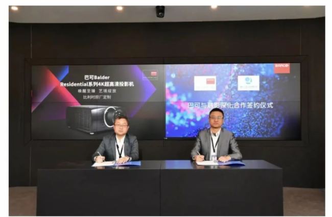 随后,双方来到签约厅举行了签约仪式。巴可中国家庭影院业务发展经理赵全和融影(上海)实业有限公司总经理王翊分别代表双方在协议上签字。