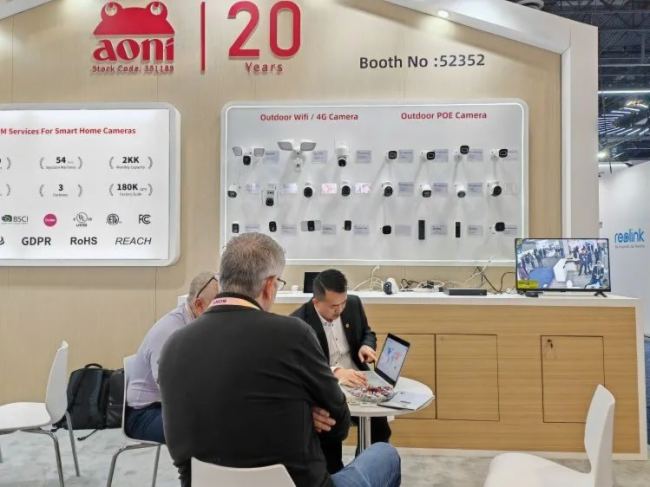 具有4K高清画质;110°宽视角;内置2.4G WiFi天线;6*850nm LED、红外夜视距离可达8米;PIR运动检测距离,最高可达8米;2块18650电池4400/5000毫安时,超长待机;本地存储MicroSD卡最大128G;IP66防尘防水;可接入太阳能板充电,无接线,安装灵活等特点,现场客户咨询不断。