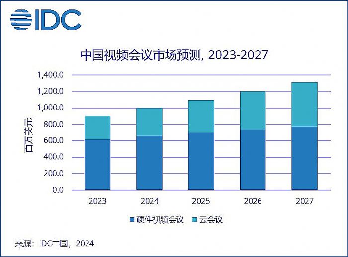 IDC于近日发布了《中国云会议市场份额,1H23》(Doc# CHC51505723,2023年12月)和《中国硬件视频会议市场份额,1H23》(Doc# CHC50365223,2023年12月)两本报告。报告显示,2023上半年,中国视频会议市场规模达到4.3亿美元(约合30.0亿元人民币),市场规模较2022年同期下降4.4%(以美元统计)。其中,硬件视频会议市场受到外部环境影响,同比下降10.8%,市场规模2.9亿美元(约合20.3亿元人民币);云会议市场受益于商业化进程加速,同比增长13.3%,达到1.4亿美元(约合9.4亿元人民币),保持了快速的增长局面。IDC认为,2023全年中国硬件视频会议市场在政府投资放缓,市场需求提前释放,经济复苏不及预期的情况下,市场发展承受压力。但同时,随着混合办公模式逐渐成为常态,以及用户对云会议习惯的养成,云会议市场正在进入快速成长期。