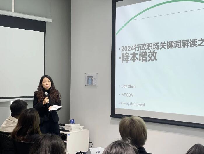 AECOM行政总监陈帆娴围绕「2024行政职场关键词解读之降本增效」这一主题发表了自己的看法。作为企业高质量、稳步前行的关键,她认为降本增效十分重要,这是一个从面到点的长期过程,要从办公运营成本最优化、人员增效与流程增效、供应链价值最大化、利用率提升等各方面着手。