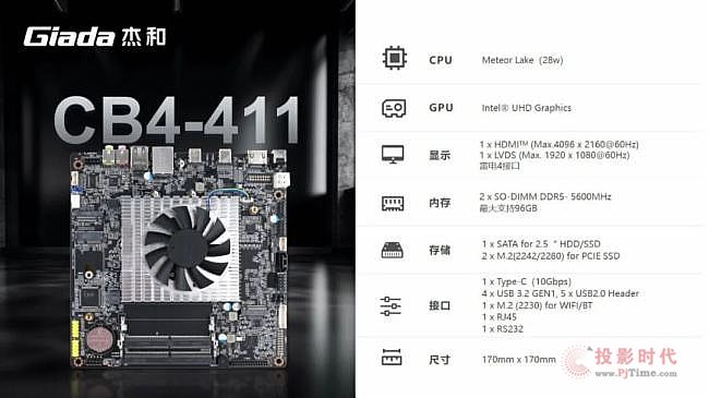基于人们日渐新增的AI算力需求,杰和科技推出AI一体机专用主板——CB4-411。该主板设计紧凑,尺寸仅为170mm x 170mm。