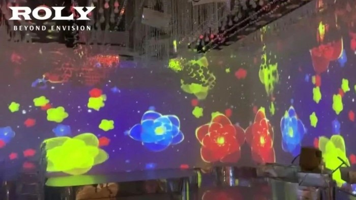 庐洲国际宴会中心的每个宴会厅都采用了7台RL-S系列短焦激光投影仪,全息投影配合现场灯光、音响、舞台等元素,定制独一无二的主题宴会厅,通过营造梦幻、沉浸式的环绕效果,让每位在场嘉宾身临其境,享受视听上的震撼体验。ROLY采用7台RL-S系列短焦投影机以拼接融合的方式为庐洲国际宴会中心打造了多面多媒体背景墙,实现超高分辨率、超高亮度、广色域的画质效果,并搭载先进的3LCD投影技术,增强投影的通透性,高度还原画面颜色,把每一处细节都描绘得极为清晰,营造出细腻生动的视觉画面,为观众带来无与伦比的沉浸感受。