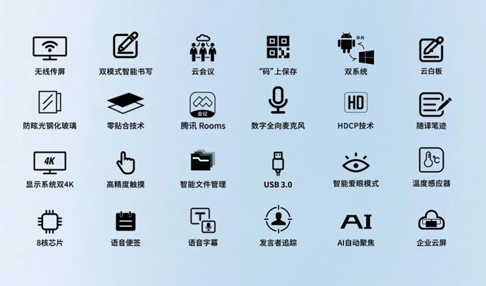 其以智慧会议为基础,整合会议室智能门牌、会议大屏、电子桌牌、物联设备等,集成更智能高效的会议预约、智慧会议全流程管控、设备运维管控等多系统,为企业打造一个智慧、科技、高效、高端的办公全新空间。