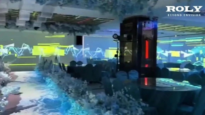 宴会厅的灯光与激光投影机相互配合,营造出梦幻般的氛围。不同的场景模式可以根据活动的需求进行切换,时而温馨浪漫,时而庄重典雅,时而充满活力。宾客们一踏入宴会厅,便仿佛置身于一个全新的世界,被其独特的魅力所吸引。