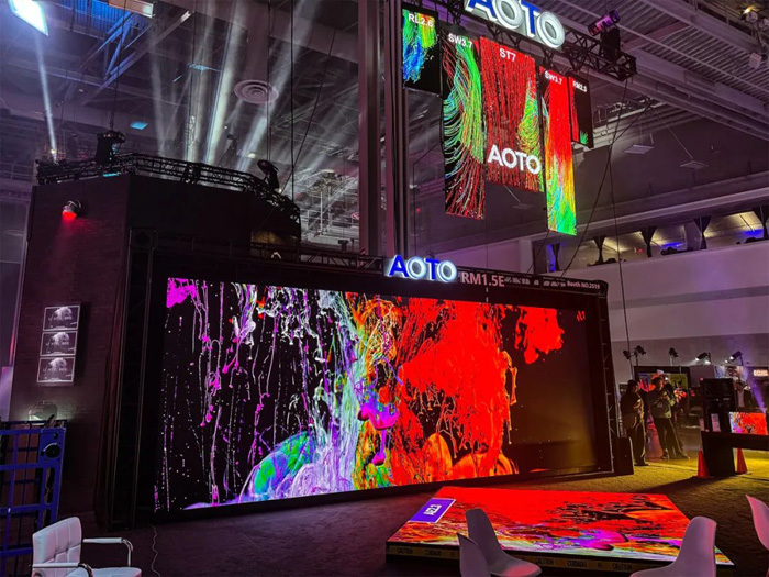 在 LDI 2024 的舞台上,奥拓电子打造的 Live House 沉浸式展示区惊艳众人。RM1.5E 系列主屏以自研 Mini 4 合 1 技术,于高亮舞台环境中仍可细腻呈现高清画质,7680Hz 的高刷新率使动态视频与复杂场景切换流畅自如、毫无闪烁,让观众仿若置身其中。AE 系列地砖屏具备出色的承重与防滑性能,既守护舞台演出安全,又借地面反射与动态交互为舞台创意添彩。