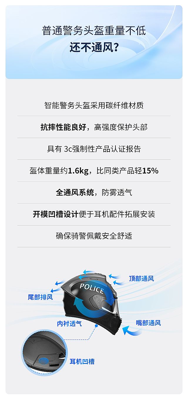 解决了普通警用头盔沉重、闷热、不智能