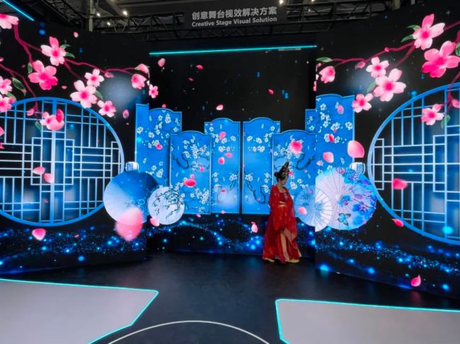 一场美轮美奂的舞台演出开始,迈锐光电无可置疑地成为众人瞩目的焦点。RP租赁系列产品 出色的色彩一致性和对比度表现,结合不同的数字内容,为观展嘉宾呈现各式各样的沉浸式场景 (国风、科技……),营造出媲美真实的空间感 。