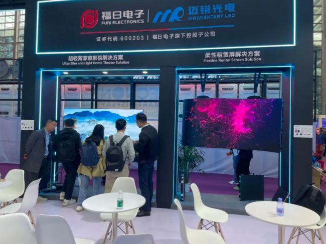 参展首日,迈锐光电展台(1-L18 )观展嘉宾人潮如织,0.98cm超轻薄家庭影院解决方案 融科技与艺术美学为一体,吸引不少观众驻足观看;RAS柔性租赁产品 依靠精细的设计工艺,在万众瞩目的LED盛宴中独树一帜;迈锐光电展品覆盖面广泛,众多来访者与现场工作伙伴深入交流,了解不同系列的产品特性、适用场景以及丰富多样的前沿解决方案,迈锐光电的产品研发实力与服务深度,让现场观展嘉宾叹为观止。