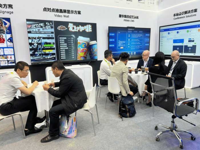 参展首日,PRIMA厦华团队成员以最饱满的状态迎接国内外朋友们的到来。本次展出产品包括小间距LED&分布式音视频管理平台、本地会议解决方案、点对点液晶屏显示方案、智慧云屏解决方案、数字标牌系列产品、集控信发系统等软硬件产品,全面覆盖智能显控、智能办公、智慧安防、智慧零售等多维度应用场景解决方案,通过灵活多样的可定制化方案满足各行业数字化转型需求。