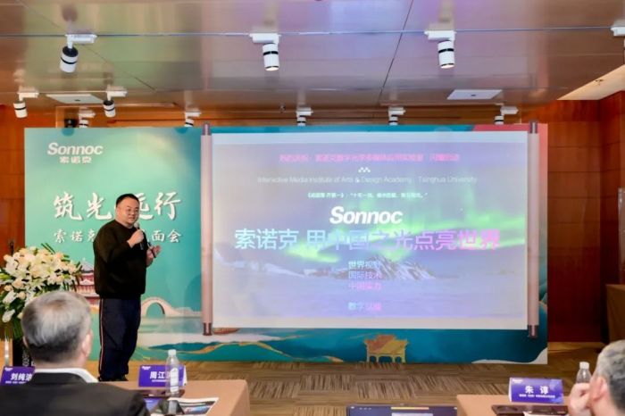 此外,清华大学美术学院交互媒体研究所副所长肖成峄先生介绍了与索诺克的合作情况以及实验室未来的发展方向。肖成峄先生表示,双方将依托实验室平台,加强技术研发与创意实验,推动数字光学交互媒体技术的创新与应用。