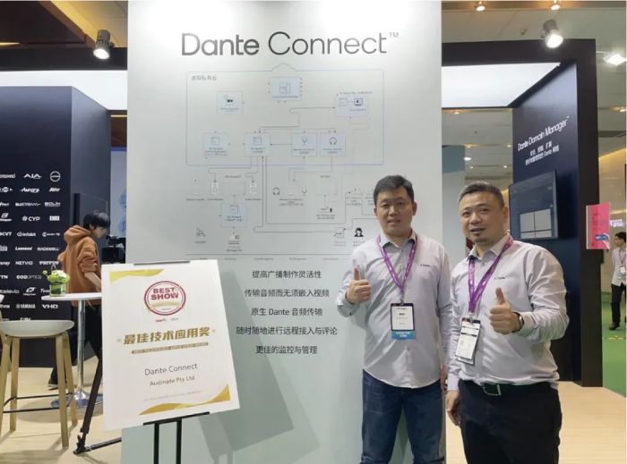 2024年4月19日-中国北京,Audinate (敖联集团),全球知名的 Dante AVoIP 方案平台的开创母公司,在本次 Infocomm 北京展会上成功展示了其丰富的 Dante 音视频生态与典型应用。其最新推出 Dante Connect 基于云端的远程广播制作软件受到了一致好评,并获得大会颁发的奖项。