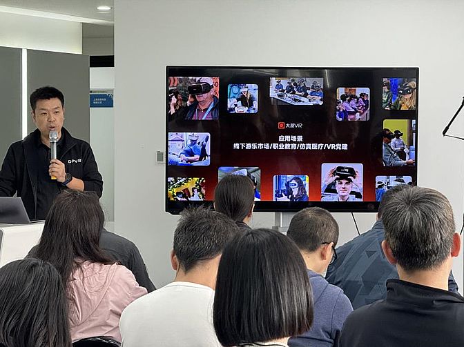 4月26日,大朋VR出席合作伙伴触新智造在上海举办的沙龙活动。会上,触新智造详细展示了旗下SITWALK、Omni跑步机等设备结合VR技术的最新商业解决方案,并在现场提供了体验设备,让到场嘉宾尽情感受虚拟现实技术加持下的交互乐趣。